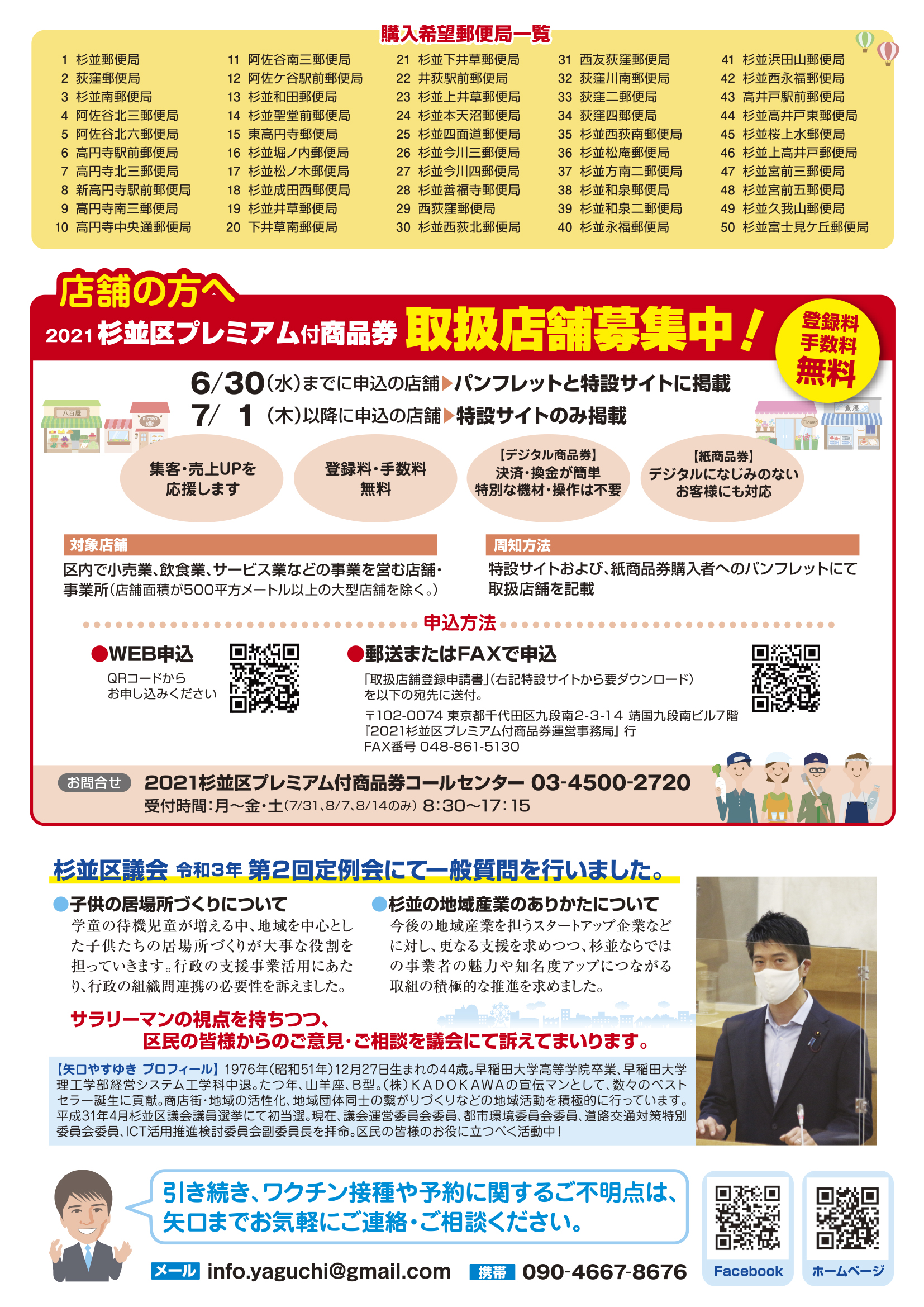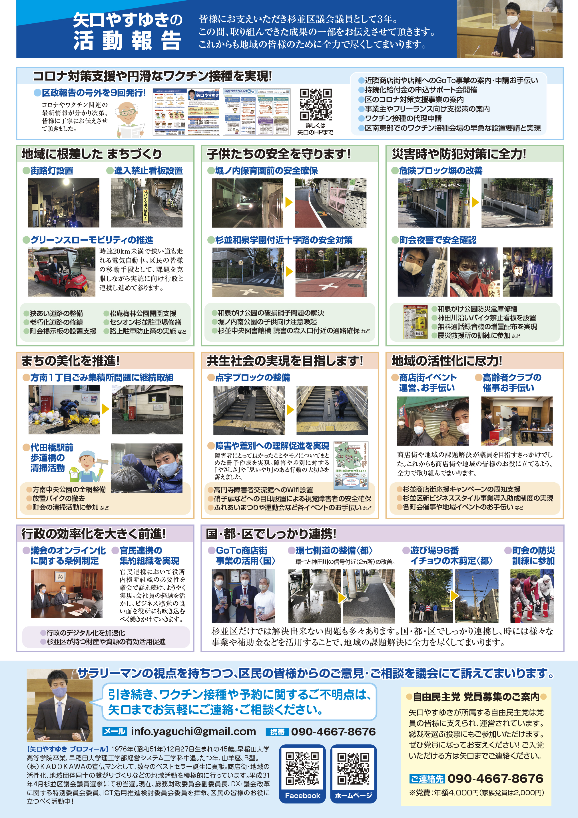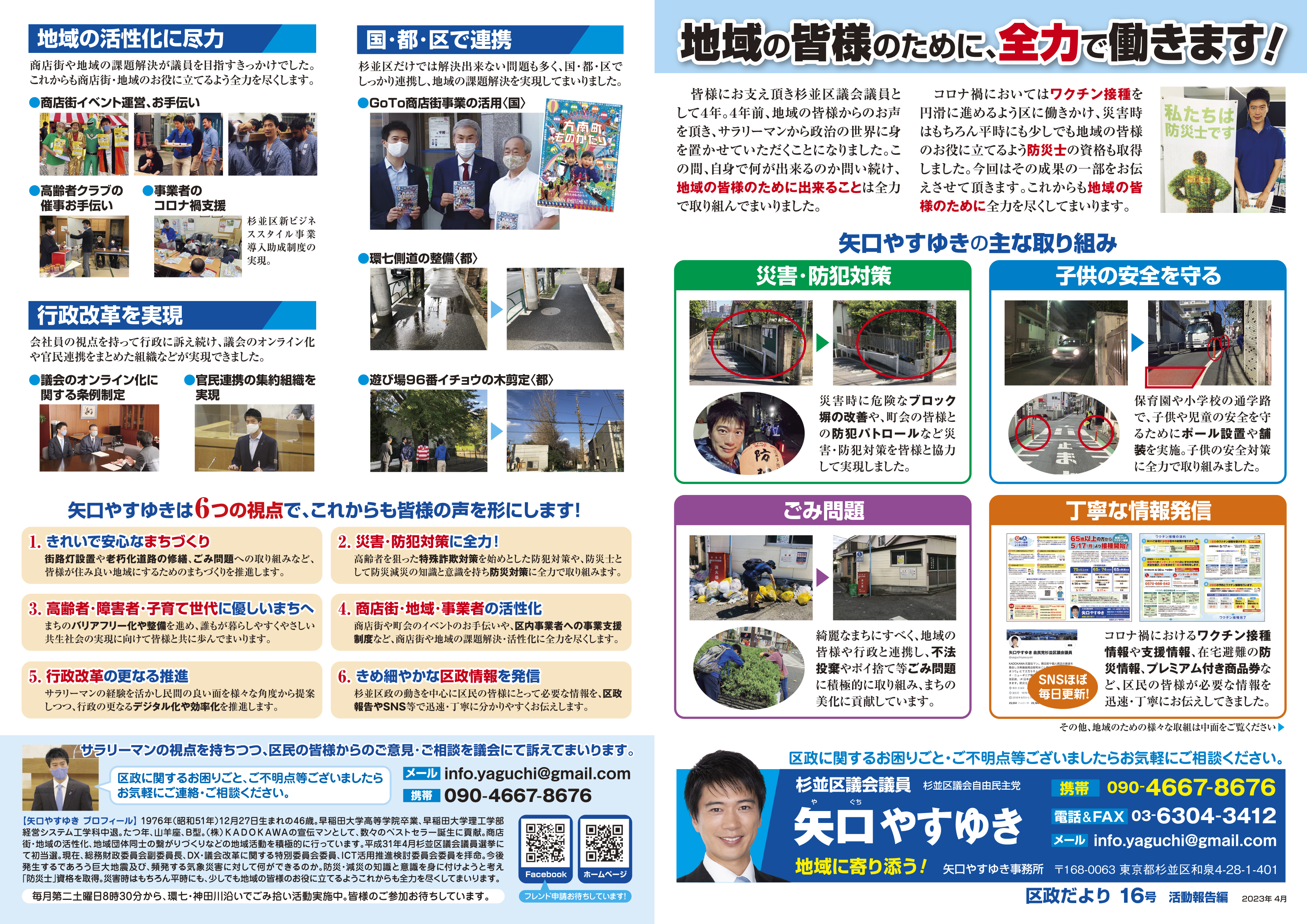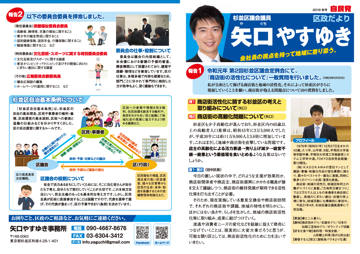| 平成31年4月、杉並区議会議員選挙において2,369票を頂き、初当選。 | 現在、議会運営委員会 委員、区民生活委員会 委員、災害対策・防犯等特別委員会 副委員長の職を頂く。 |